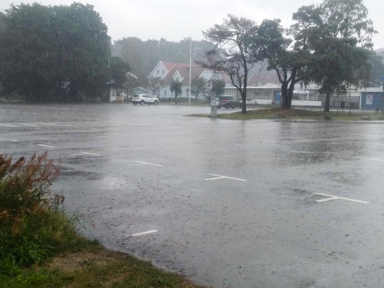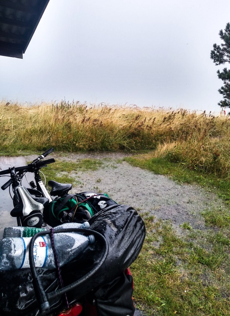 It took twenty minutes of careful descending through the deluge until we reached the small town of Båstad where we finally found some shelter to wait out the worst of the downpour.