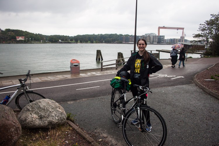 We stopped under the Älvsborg Bridge in the middle of the city and took a few photos to commemorate finishing the Swedish leg of our journey. We had covered 337.6 kilometres since leaving Copenhagen in six days of cycling. Considering Elana had never been on a cycle tour before, and rarely cycled back home, this was quite an achievement for her.