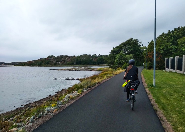 After a great night of sleep on our hidden plateau, we packed up our tent and hit the road. The sunshine of the previous day had been replaced by a threatening sky, and with rain forecast later, we felt no guilt in shortcutting another of the Kattegattleden’s peninsula loops. This time we saved ourselves 21 kilometres by taking back roads directly west from Kungsbacka.