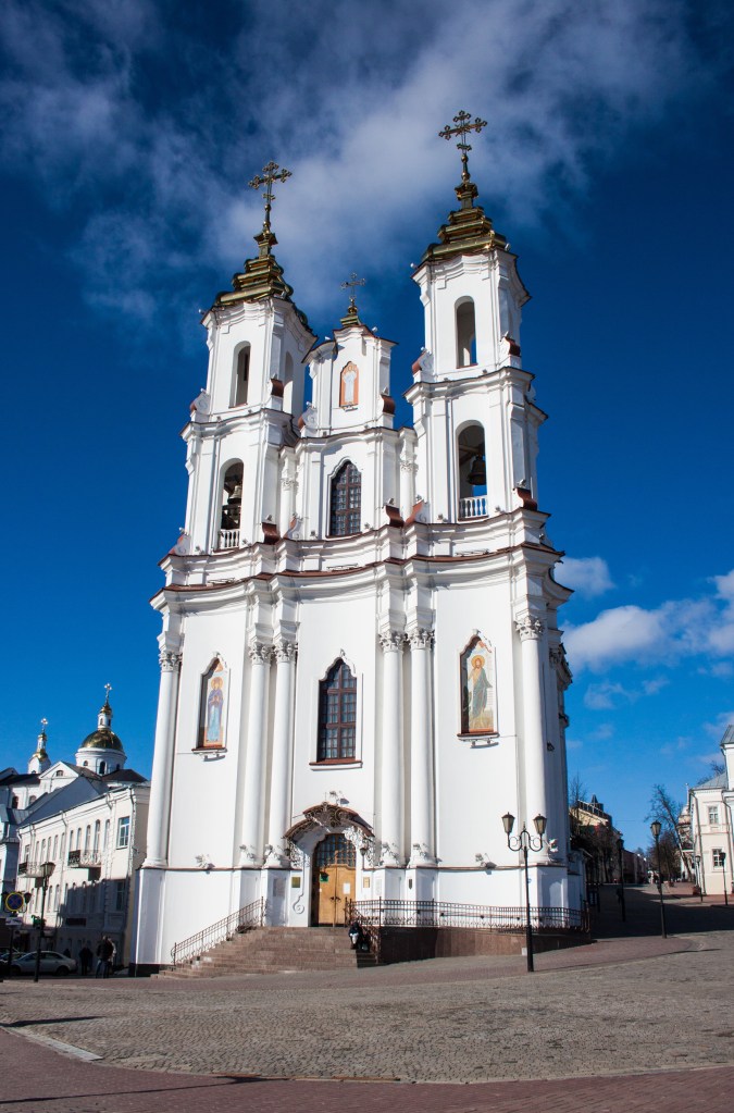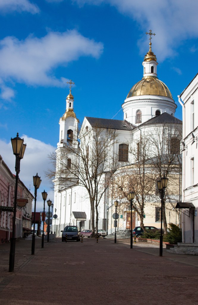 Uspensky Cathedral is the most well known building in Vitebsk, situated in a prominent position overlooking the Daugava River. The main cathedral appeared to be closed when we visited, but the interior is apparently quite impressive. If planning to venture inside, remember that these Orthodox cathedrals require you to be conservatively dressed.