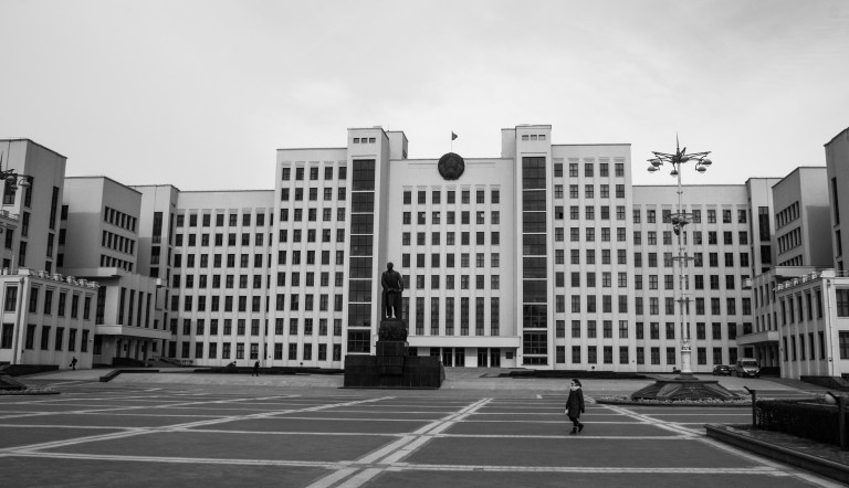 Independence Square houses several distinct buildings, centered around a stark statue of Lenin. The Red Church, The Belarus State University and the Supreme Soviet building (pictured below) are all situated in this sprawling square.