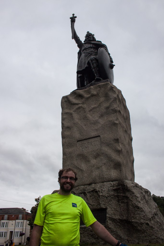 We flew along the last section into Winchester, coasting through pleasant farmland and ending the day with a fast, grassy descent down by St.Catherine’s Hill into Winchester itself. Here we arrived at the King Alfred’s statue with a whole hour to spare until the bike rental shop closed, in spite of the two punctures. That morning I was worrying whether I would even make it considering how much my body was struggling with these continuous days in the saddle, but it’s amazing what some ibuprofen and good company can do.
