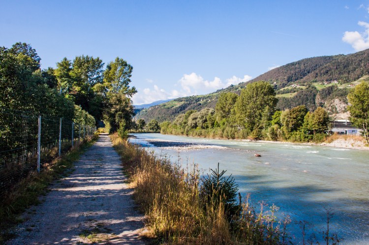 So, I wasted no time in loading up the Trans-Dolomiti gpx file on the Komoot app, attaching my phone to handlebars, and setting off down the river path south out of Brixen-Bressanone. I instantly felt relaxed here by the calm azure water of the Eisack river flowing gently alongside me as I cruised southwards.