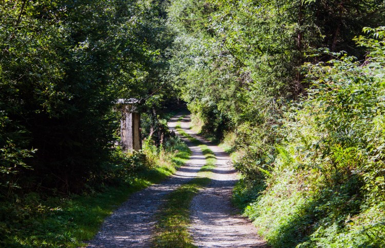 After some considerable effort I reached a barrier which marked the beginning of the off-road climbing. Here, the track got even steeper, with the addition of loose gravel to contend with. Up and up I climbed through a heavily forested river valley full of wild flowers. Despite it now being past 11 a.m., the valley was so deep that it was still cast in shadow. The cold of the previous night still lay undisturbed here in the depths of the valley, and with the chill radiating from the nearby river, it felt like a change in climate zones.