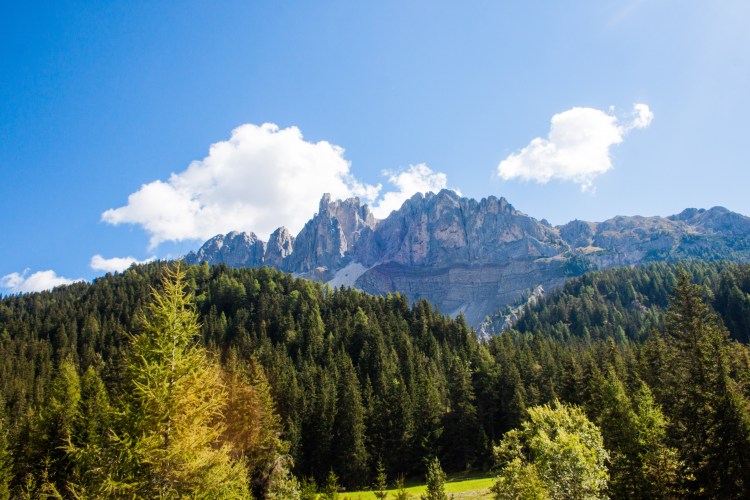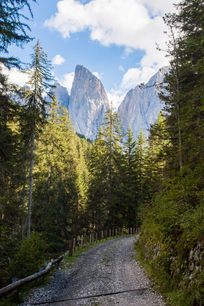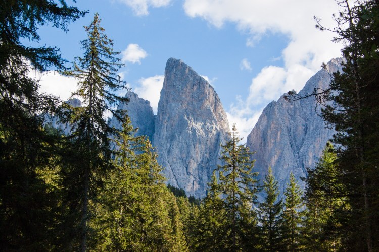 All morning I had been hidden deep within the confines of a thick coniferous forest, but after a few more kilometres of climbing, I finally emerged. In front of me the first bare rock pinnacles of the Dolomites rose starkly, their dark grey rock standing out brilliantly against the blue sky. Despite how out of breath and fatigued I was already due to my terrible state of fitness, it was all immediately forgotten at that one sight.