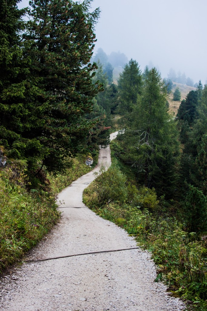I could have forced myself to wild camp in a saturated forest under the driving rain, but considering the poor state my body was in, and the fact the ski town of Cortina d’Ampezzo – with its affordable out-of-season accommodation – lay just twenty kilometres and 1,000 metres below me, I decided to aim for this.