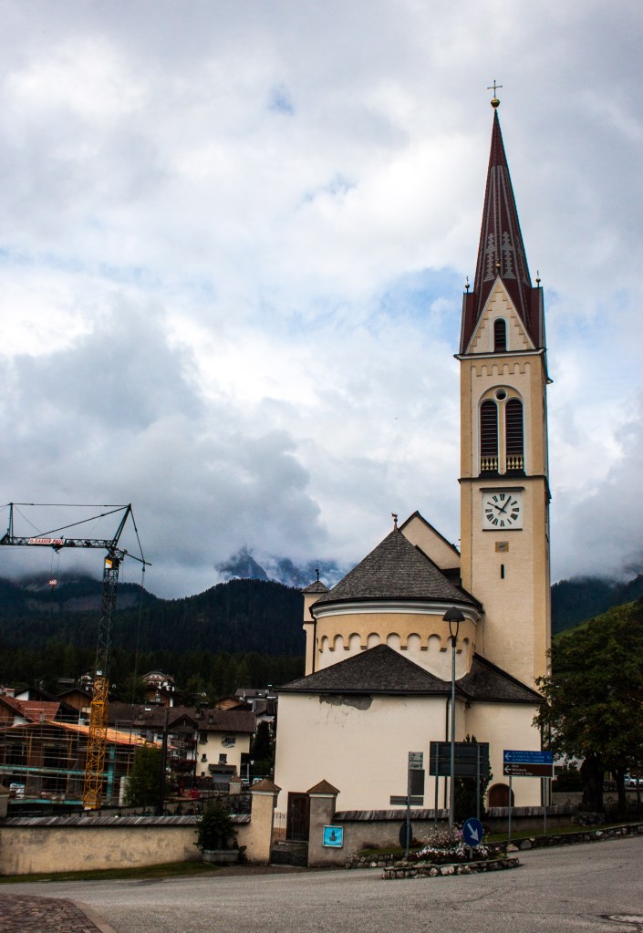 At the bottom of this cycling track, I was deposited into the clean, charming pedestrian streets of Cortina d’Ampezzo. I looked very out of place here amongst the well-dressed Italians as I limped through the town on swollen feet while mud and water dripped behind me!