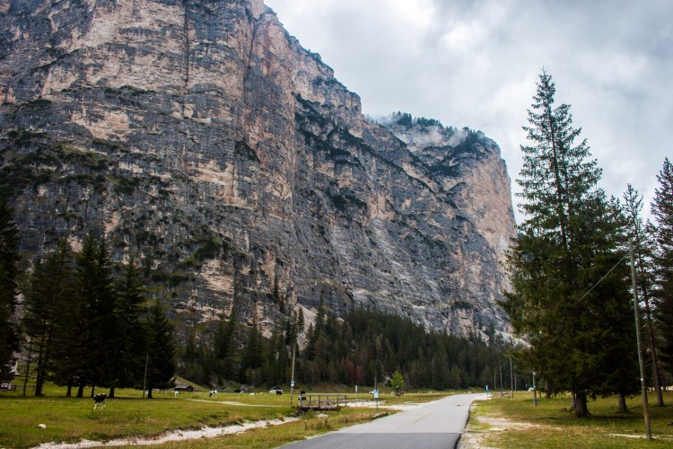 As I neared Fanes National Park, more of those ubiquitous stark grey pillars and cliffs of the Dolomites came into view, and I enjoyed slowly closing in on them, knowing that I was about to begin climbing right into their midst again.