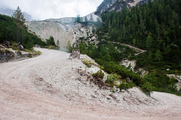 I chatted away with the Italian cyclist here for a while. He lived nearby and regularly cycled up to the nearby Pederu guesthouse, situated at the end of the tarmac road leading into Fanes National Park. He stated that the Pederu guesthouse was almost like his paradise away from home, somewhere he could cycle to get away from it all and sit down in the sunshine with a drink and good food. It was a really nice sentiment, but I had a feeling there would be no outdoor eating or drinking in this inclement weather.