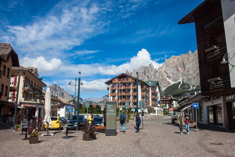 When my cycling shoes had finally dried out (the curse of travelling lightweight and only bringing one pair of shoes), I went for a stroll around the peaceful, pedestrian streets of Cortina d’Ampezzo, photographing the beautiful town and its stark backdrop of limestone mountains.