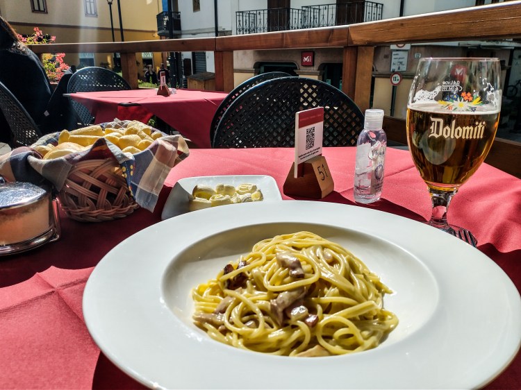 Considering I had the day off to relax, I decided to make the most of it by stopping in a nice cafè by the main square. Here I sat back, relaxed and read my book while knocking back some espressos and enjoying a second breakfast of a Nutella tart. Once I was finished here, I migrated to a nearby restaurant where I enjoyed a cold beer and a carbonara on the sunny terrace. The food here was absolutely superb and I felt blessed that I had this opportunity to be out here after so long stuck at home in lockdowns.