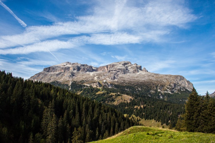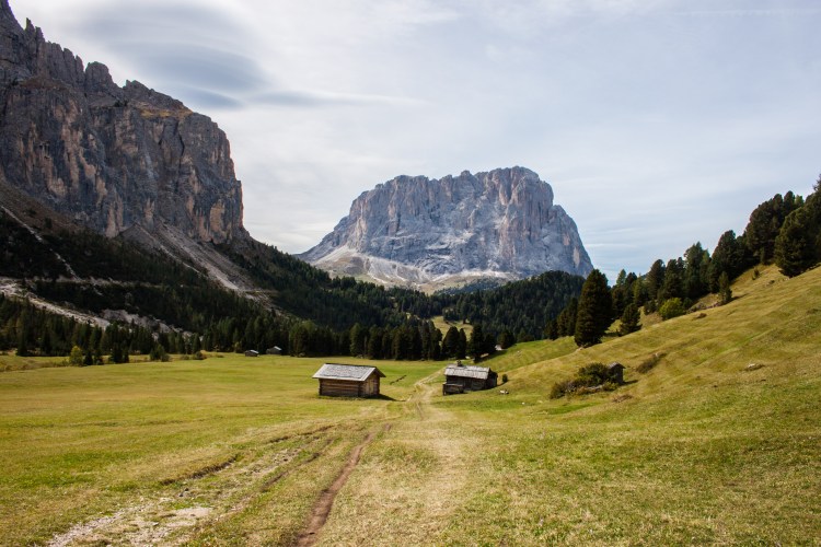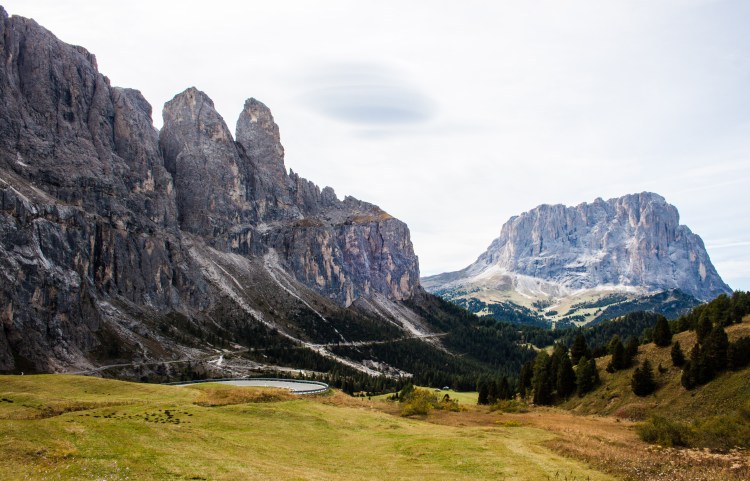 Once on the road I joined a heavy flow of traffic, steeply climbing to the Gardena Pass at 2,136 metres. At the top of this pass lay the large wooden chalet of Rifugio Frara. This particular rifugio was situated right beside a busy main road, and looked more like a 5-star hotel than the rifugios I had been frequenting during my time in the Dolomites. It seemed the better rifugios with a bit more atmosphere were always the ones that had no road leading to them, and instead were frequented purely by hikers and the occasional mountain biker.