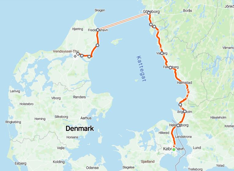 The below blog posts cover a 450-kilometre cycle along the coastlines of Denmark and Sweden by me and Elana in the summer of 2019. Being Elana’s first cycle tour, we decided on this flat and peaceful route along the cycle paths of Denmark and along the majority of the Kattegattleden, a 390-km-long cycle path along the Swedish coast from Helsingborg to Gothenburg.